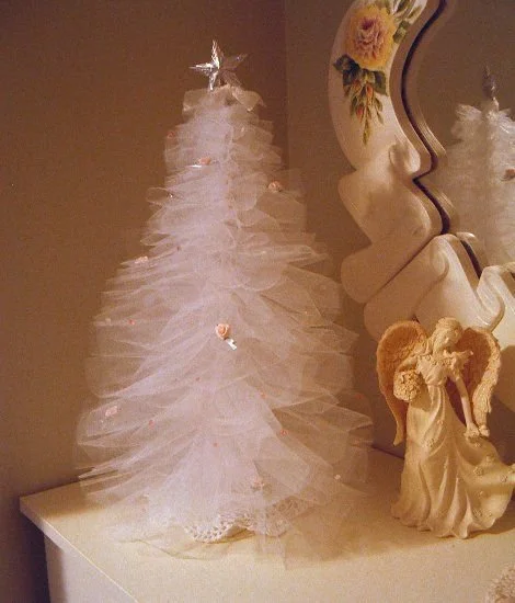 I came across these antique feather trees on Pinterest and absolutely fell in love with them. I love the simplified and hand made quality to them along with charming cotton spun ornaments.